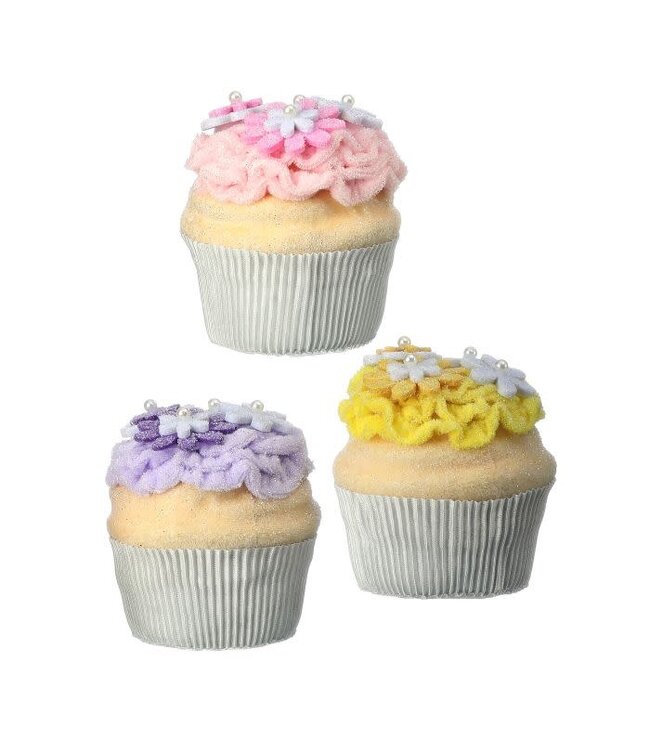 The Vintage Easter Blossom Cupcake is a lightweight, artisanal decorative accent designed with a nostalgic bakery aesthetic, perfect for adding a sweet touch to seasonal displays. SOLD INDIVIDUALLY