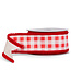 This 4" x 10 yds red gingham wired ribbon features a classic check pattern with playful pom-pom trim, perfect for crafting, gift wrapping, wreaths, and seasonal décor. Holds shape beautifully.