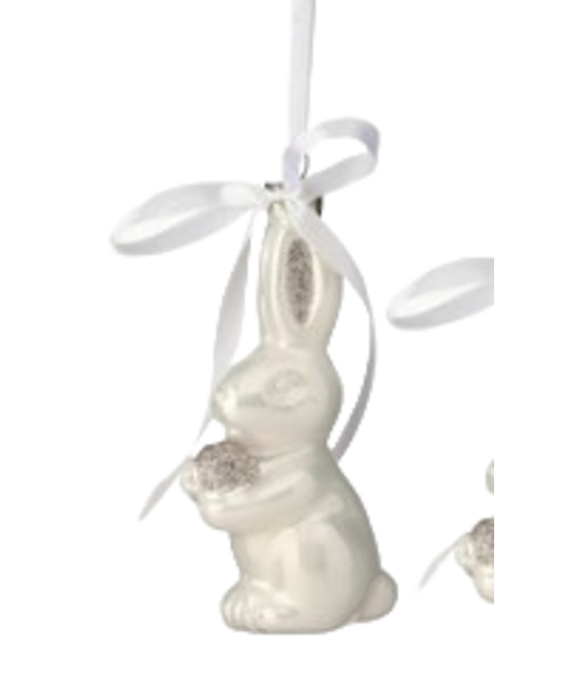 Elevate your Easter décor with the stunning 4.5" Glass Bunny Ornament. This precious bunny ornament, crafted from high-quality glass, adds a touch of elegance to any spring display.