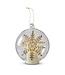 4.75-inch LED clear glass ornament with gold gilded etched snowflake design. Adds a warm glow and elegant touch to holiday trees, wreaths, or garlands, combining festive charm with timeless style.