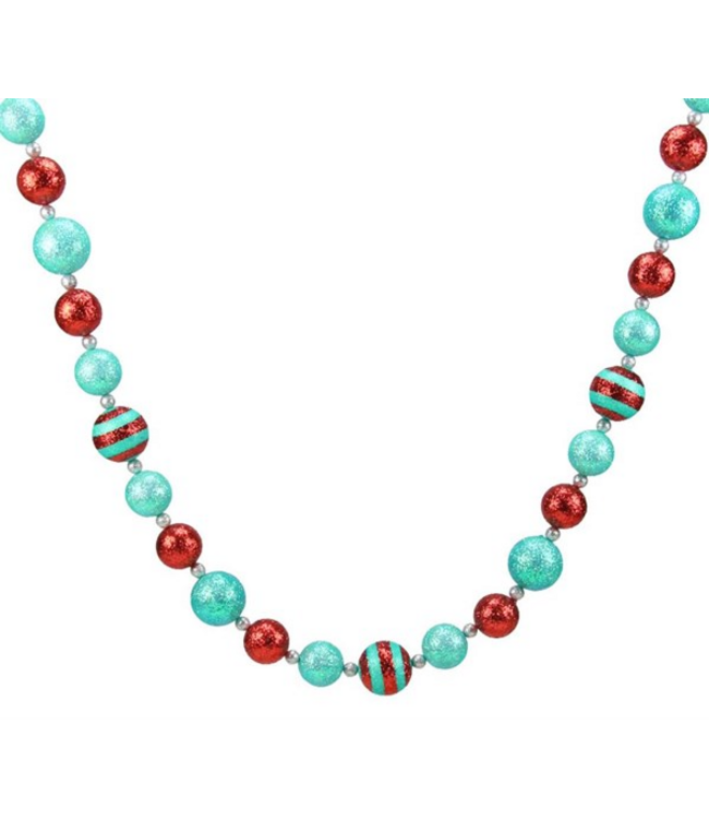Wrap your Christmas tree in this marvelous glitter stripe ball garland! Featuring an assortment of mint green and red balls, this garland will make the perfect enhancement to any holiday display!Â