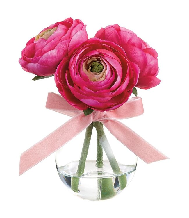 6 Inch Ranunculus in Glass Vase Beauty Pink