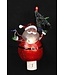 A Happy Santa Dressed In His Traditional Red Suit Holding A Green Bottle Brush Tree In His Hand Which He Is Trying To Decorate With A Strand Of Lights