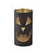 Light up spooky nights with the Black Jack-o’-Lantern Glass Cylinder Candle Slip Cover. Festive glow with Halloween charm!