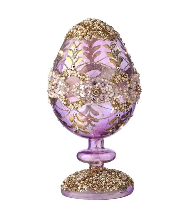 Bring an elegant glow to your home with this stunning 8-inch Glass LED Egg Pedestal with Jewel Accents.