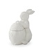 Charming white ceramic container with flower-embossed egg and Easter bunny. Perfect for adding a festive touch to your spring or Easter décor.