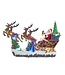 It features Santa riding in his sleigh filled with a Christmas tree and toys being pulled by 4 reindeer. When switched on19 multi-color LED lights turn on to light Santa's way and eight assorted Christmas tunes play.