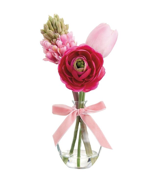 9.5 Inch Ranunculus/Tulip in Glass Vase Pink Beauty
