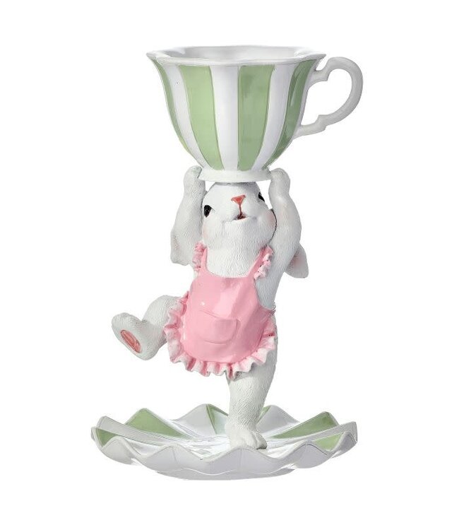 9.5” Resin Bunny With Teacup