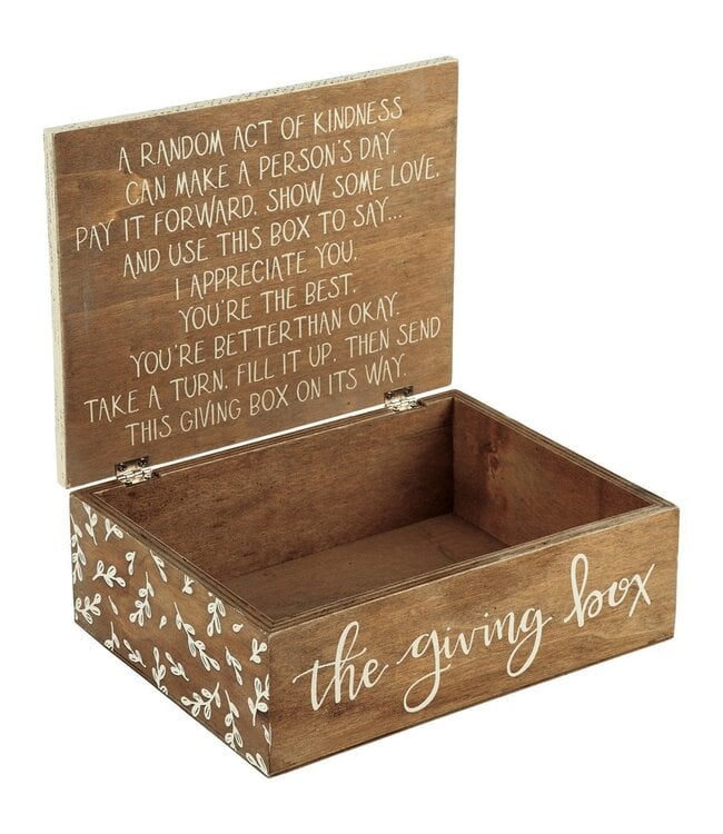 This wooden Giving Box is the gift that keeps on giving. It is designed to be filled up with goodies and passed on to brighten someone's day, only to be passed on again to a new recipient and before you know it, so many smiles have been inspired by this d