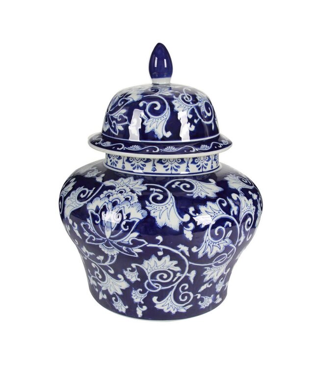 The bold contrast of blue and white combined with elegant flourishes infuse the large Aline Ginger Jar with a timeless grandeur. Read more.