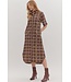 Turn heads in this geometric print short-sleeve midi dress. Modern, chic, and perfect for any occasion.