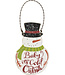 A snowman-shaped ornament with a hand lettered "Baby It's Cold Outside" sentiment and textured coating for snowy effect. Contains twisted top wire loop for easy hanging.