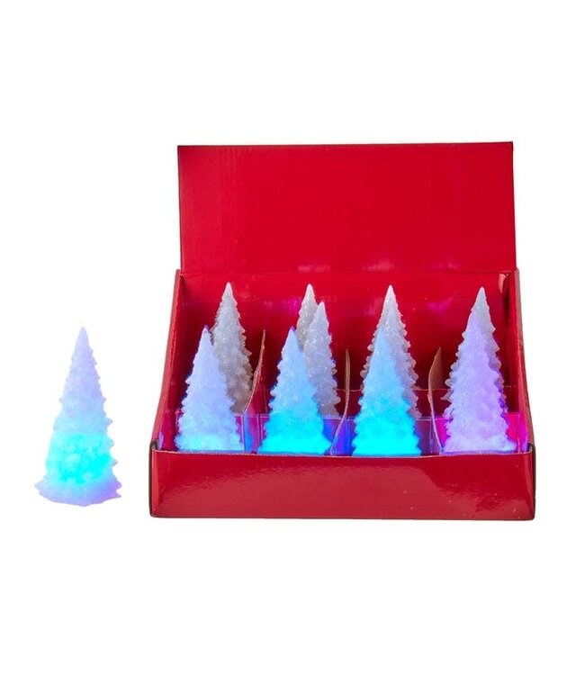 This Battery-Operated RGB LED White Glitter Tree is a fun and festive way to add to your holiday décor! When turned on, the white glittery tree illuminates from within with multi-color lights for a festive glow.