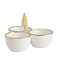 Mottled ceramic triple dip server features electroplate beaded edges and center groove to hold gold cast aluminum tree spreader. Read more.