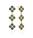 A trio of clovers descend in linear fashion for an effect that’s equally streamlined and romantic. Made with luminous orbs of blue labradorite gemstones with golden berry centers, this set brings femininity and a little luck to carry with you wherever you