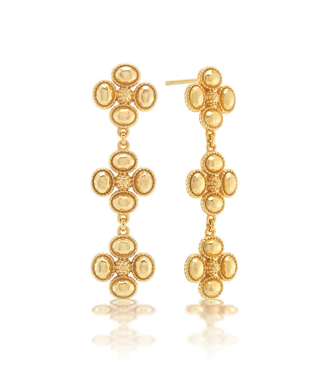 A trio of clovers in gleaming gold with gilded berry centers descend in linear fashion for an effect that’s equally streamlined and romantic—these versatile earrings bring femininity and a little luck to carry with you wherever you go.