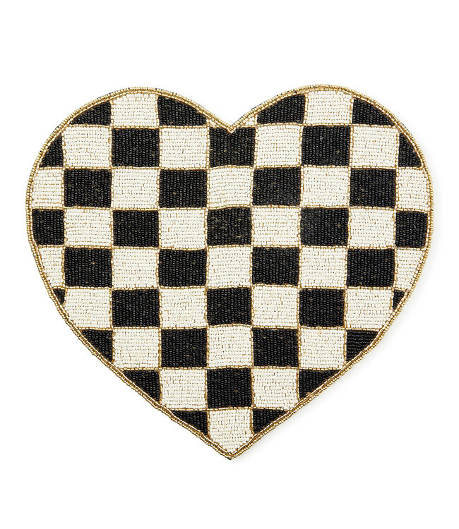 MACKENZIE CHILDS Black and White Check Heart Shaped Placemat