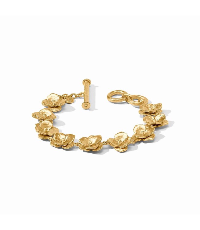 An opulent floral bracelet, each delicately sculpted petal blossoming with refinement and romance. Features an adjustable toggle closure. Read more.