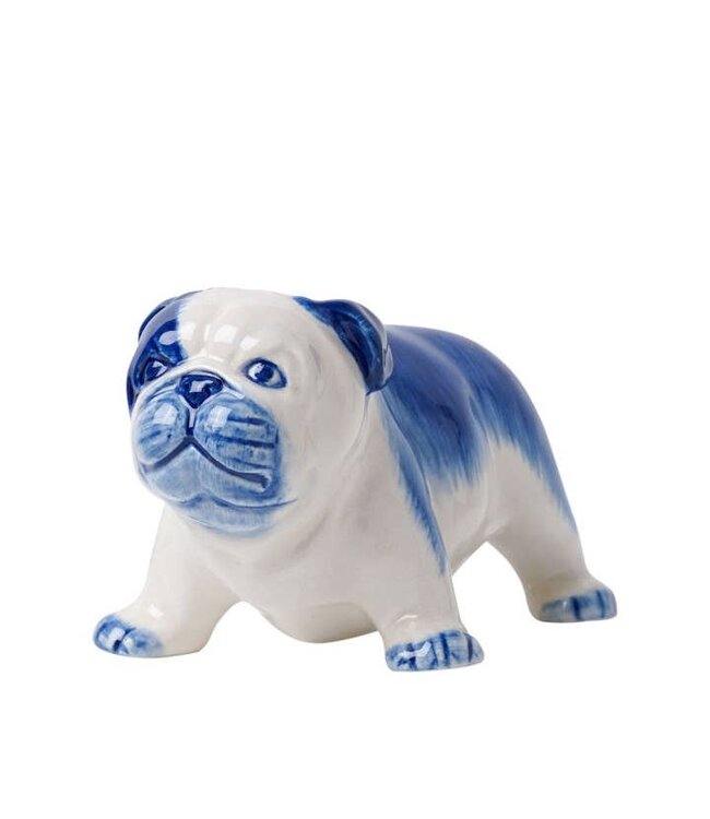 A nice Delft blue statue of a boxer. A dog that is happy, playful and intelligent but with an expression that commands respect. This hand-painted Delft blue statue of a boxer clearly shows all his detailed facial creases, making it a unique piece of decor