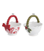 Stoneware candy dish features pedestal base and top handle with bow or holly bunch stoneware attachment. Read more.