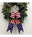 Add patriotic charm with this Canvas Red & Natural Stripe Bow with Navy Blue Stars. Perfect for festive décor, wreaths, and holiday projects!