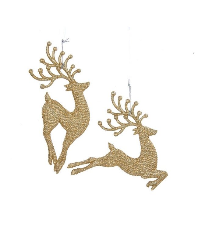 This champagne gold diamond reindeer ornament is an elegant addition to any holiday décor or Christmas tree.