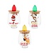 Foiled stemless wine glass. Comes with metal wine bottle stopper with LED light-up plastic Christmas bulb.