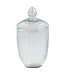 Cut hand-blown glass jar with lid, showcasing artisanal craftsmanship and timeless elegance. Perfect for storing candies, small treats, or decorative accents while adding sophistication to any space.