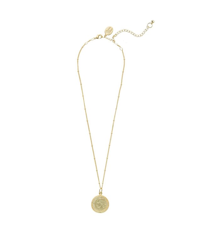 Experience the elegance of the Dainty Gold Coin Necklace, a unique creation from Susan Shaw. This pendant charm necklace features a handcast gold coin delicately hanging on a dainty chain, exuding an air of subtle sophistication.Â