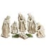 Hand-painted poly-resin distressed nativity. Jesus, Mary, Joseph, and 3 Wise Men.
