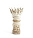 Distressed whitewashed and gold wood candleholders with metal are decorative items that combine a rustic, vintage look with a touch of elegance and durability. These candleholders are versatile and can be used in various settings to enhance the ambiance.