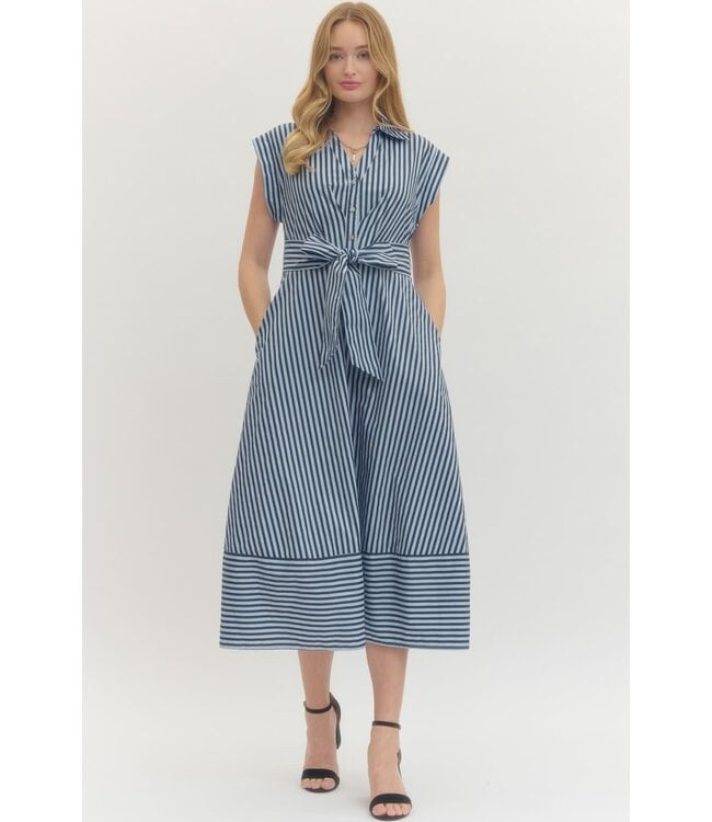 Donna Striped Cap Sleeve Midi Dress