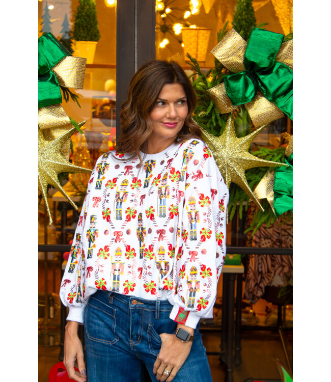 Add holiday charm with the Nutcracker & Candy Cane Sweatshirt—festive, cozy, and perfect for Christmas celebrations or winter lounging!