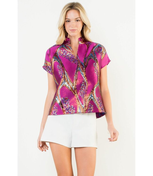 Brighten your look with this vibrant short-sleeve top. Bold patterns, comfy fit, and effortless everyday style.