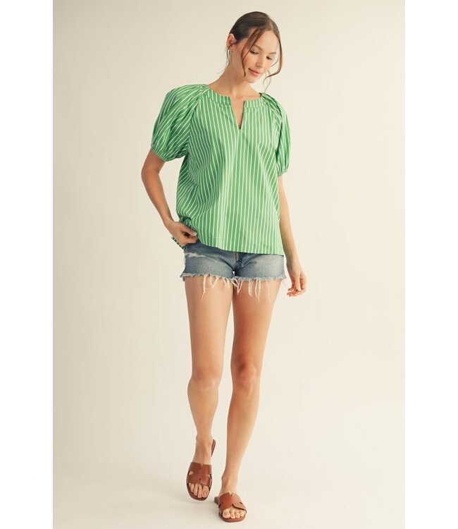 Ella Shoulder Pintuck Detail Stripe Peasant Top
