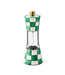 Heavy-gauge, hand-glazed steel underbody with hand-painted Emerald Check decoration and acrylic construction featuring a ceramic grinder.