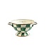 Heavy-gauge, hand-glazed steel underbody with hand-painted Emerald Checks, rimmed in bronzed stainless steel. Antiqued brass-finished handles. Pieces may vary due to the handmade nature of each product.