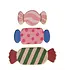 Add a touch of whimsy to your home decor with this enameled metal candy shaped trays. Each tray features a vibrant color and a luxurious gold edge, making them perfect for serving snacks or displaying trinkets.