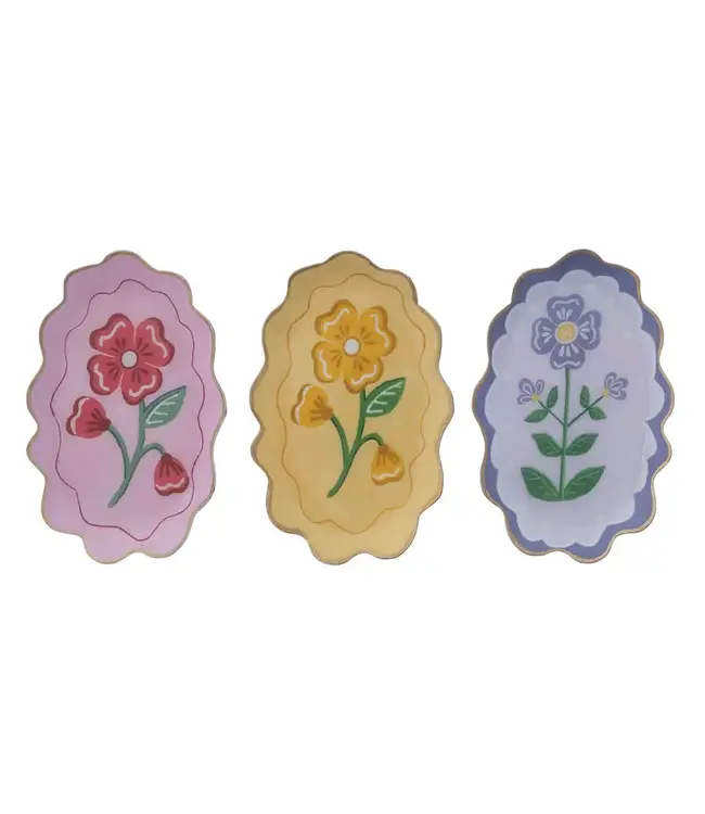 Enameled Metal Scalloped Tray with Flower & Gold Edge - Sold Individually