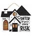 Are you a risk taker? This spooky Halloween house sign warns of the perils within! Complete with bats, ghosts, a black cat and spider webs, this sign is a warning to those who are fainthearted! Place this eerie sign on your door or in a Halloween wreath a