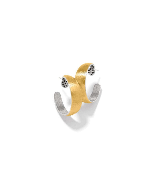 The Entrata jewelry including these two-tone small hoop earrings exudes pure luxury. Enhanced by softly hammered details, each piece is modern art-to-wear – breathtaking from every perspective.