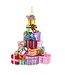 Glass gift box ornament is a festive addition to any home décor or Christmas tree. This ornament featured a stack of colorful and glittered gift boxes in the shape of a Christmas tree.