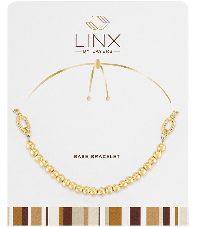 The Gold Ball LINX Base Bracelet features a sleek gold chain accented with polished ball details, offering a classic yet modern look. Perfect for layering or personalizing with charms for a unique touch.