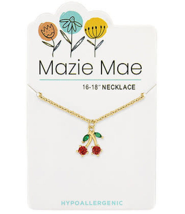 Add a playful yet elegant touch to your style with the Gold Cherry Mazie Mae Necklace, featuring a delicate gold-tone chain adorned with charming cherry-inspired accents for a sweet and stylish look.