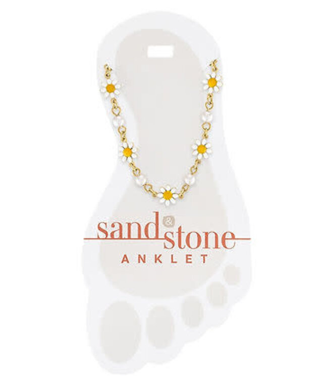 Delicate gold daisy Sand & Stone anklet adds a playful, beachy sparkle. Perfect for elevating your summer look with effortless charm.