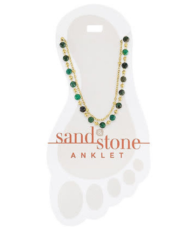Gold Green Beaded Duo Strand Sand & Stone Anklet