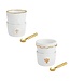 Two ceramic tidbit dip bowls with electroplate gold details. Bowls come with gold beaded metal spoon.