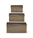 Add a luxe touch with this Gold Metal Alligator Skin Embossed Lidded Box. Stylish and functional, it's perfect for storing treasures while enhancing your decor with a bold, textured design.