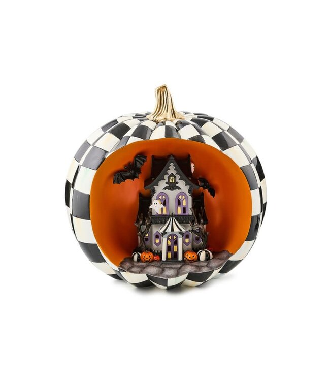 MACKENZIE CHILDS Halloween Illuminated Haunted House Pumpkin Scene